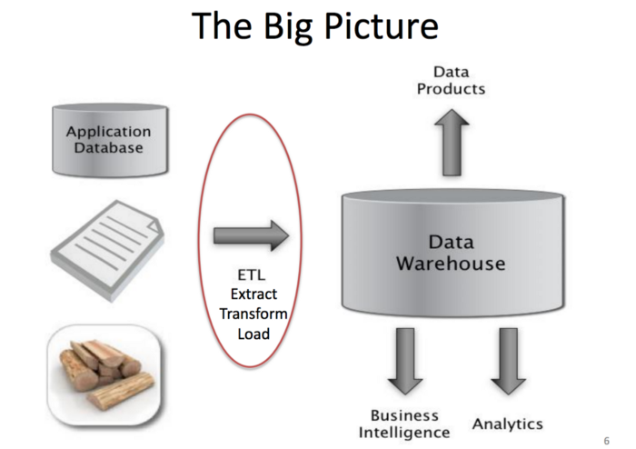 데이터 웨어하우스의 설계는 ETL(Extract, Transform, Load)이라 불리는 공통적인 패턴을 따른다. 대부분의 데이터 파이프라인 디자인은 이 세가지 스텝으로 이루어져있다. 한마디로 ETL이란 원본 데이터가 어떻게 분석이 가능한 데이터로 변형되는지 보여주는 청사진이다.